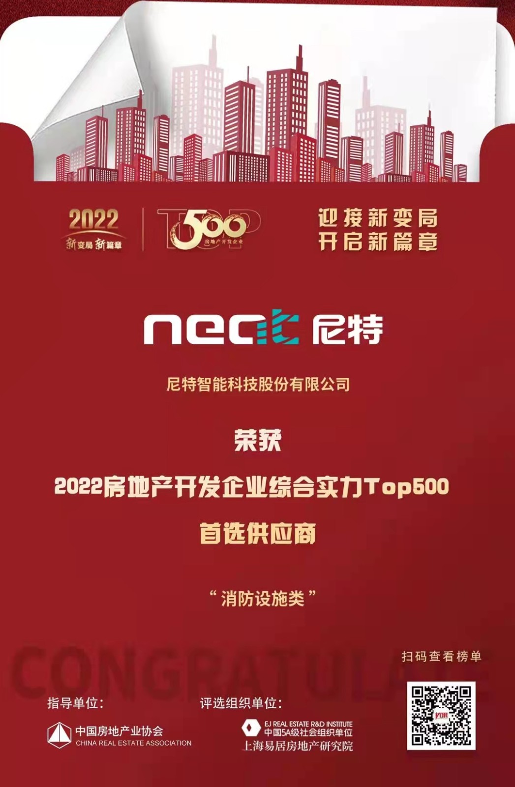 恭喜尼特連續(xù)五年獲評(píng)500強(qiáng)地產(chǎn)首選供應(yīng)商殊榮?。≈悄苁枭⑵奉愇涣邪袷祝。。?